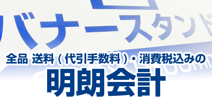 ●ハトメにひっかけるだけの極シンプルなバナースタンドです。