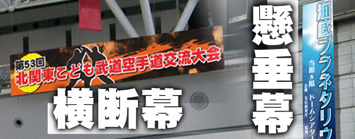 ■屋外に長期掲示する場合はターポリン(溶剤IJ)で、持ち運びをする場合は軽量な生地(昇華プリント)で製作可能です。