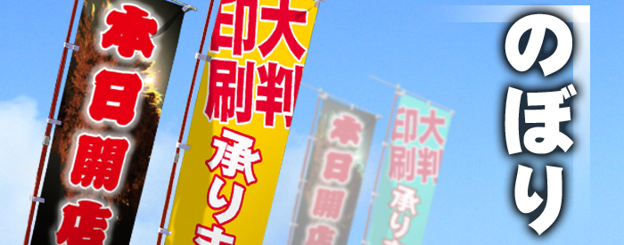 ■昇華転写プリントにてフルカラーのぼりを1枚から製作可能です。